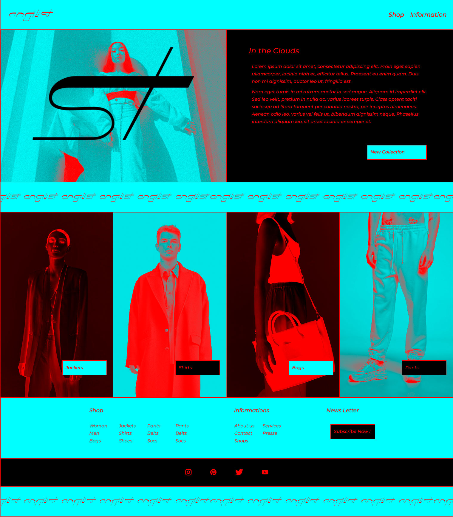 Logo typographique et identité graphique pour la marque de vêtements Angilist. Il s’agissait de créer une identité visuelle moderne, unique et légère où les ligatures du logo forment le fil à coudre ainsi que la couture des tissus pour former le vêtement. L’aspect script du logo le rend unique, il évoque également une signature et l’aspect détaché entre certaines lettres lui donnent ce côté à la fois futuriste et innovant. Ainsi une ligature du logo vient habiller au sein de l’identité graphique.
